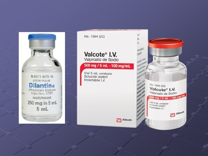 Evaluación del estatus epiléptico • ABC, luego evaluación general y del SNC. • O 2, ventilación mecánica PRN, monitoreo cardiaco y oximetría de pulso. • Canalizar 2 vías. • Laboratorios: biometría, electrolitos, Ca 2, Mg 2, fosfato, glucosa, perfil hepático, toxicología y niveles séricos de antiepilépticos. • Considerar tiamina 100 mg IV y luego glucosa (50 m. L Dx 50%, en niños 2 m. L/Kg Dx 25%).