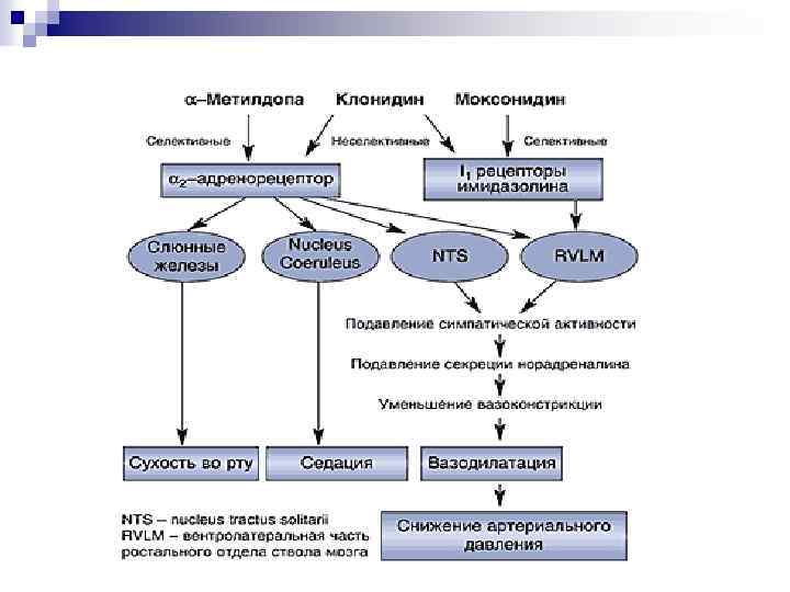 Средства центрального нейротропного действия. Классификация: n 1. Агонисты центральных α 2– адренорецепторов Клофелин (Клонидин), Метилдофа, Гуанфацин n 2. Агонисты центральных имидазолиновых рецепторов: Моксонидин (Физиотенз, Цинт)