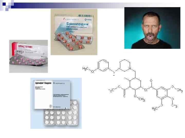 Первые гипотензивные средства на основе алкалоидов индийского кустарника раувольфии. Резерпин Много побочных действий!