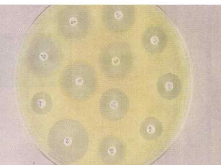 Антибиотикограмма, способ дисков 1. ¡ ¡ ¡ Бактериологический метод на этапе изучения чисой культуры; 2. Применен диффузный способ определения чувствительности к дискам с антибиотикам на плотной среде АГВ; 3. Этап исследования определяется по размерам зоны задержки роста культуры или ее отсутствии; 4. Для подтверждения диагноза необходимо- определить минимальную подавляющую концентрацию препаратов (МПК), определить чувствительность к лекарственным препаратам с помощью ПЦР; 5. Основные формы и механизмы резистентности: модификационная и генетические формы; механизмы связаны с изменчивостью бактерий.