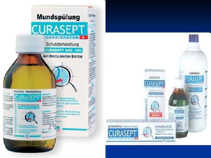 Терапевтическая стоматология n n n Cupral Forfenan Saforide Холисал Камистад Dentinox Ваготил Пасты (Curasept, Detartrine Z и др. ) Ополаскиватели, бальзамы, эликсиры Strepsils, Фалиминт, Фарингосепт, Лизобакт Стопангин