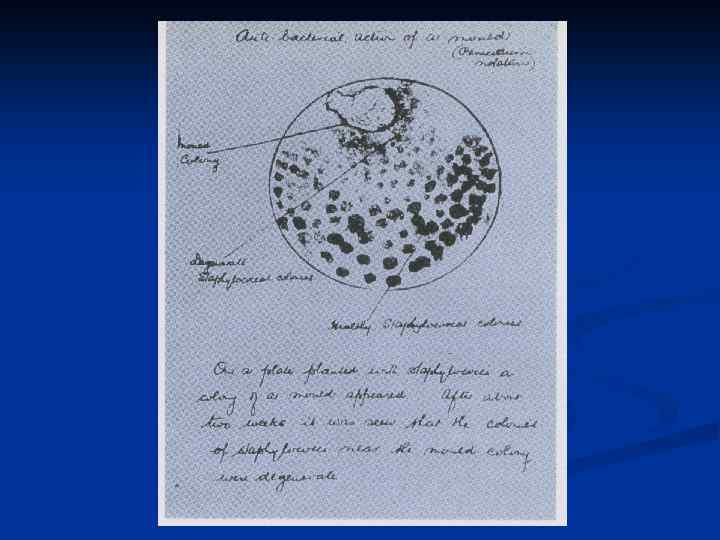 Биологическая антисептика Первый антибиотик - пенициллин открыл Александер Флеминг (1881 -1955) врач -микробиолог больницы св. Марии в Лондоне в сентябре 1928 года. n Доклад и публикация - февраль 1929 года. n