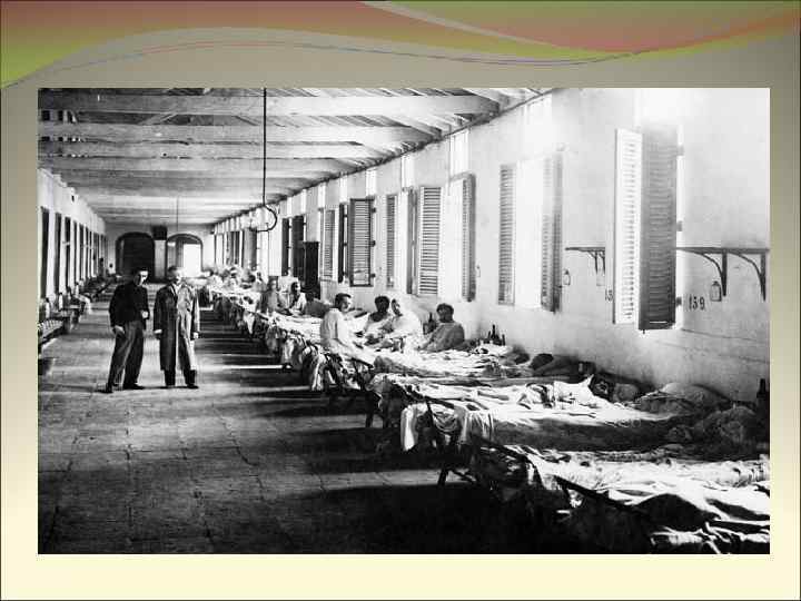 Картины из прошлого Как только первые средства для обезболивания были найдены, человечество торжествовало. Любые операции отныне перестали казаться страшными. Однако, хирурги столкнулись с фактом высокой послеоперационной смертности и причины ее были загадочными. До 60% оперированных уносили в могилу эпидемии послеоперационой горячки. Не лучше обстояли дела в акушерских клиниках, где смертность от послеоперационной горячки достигала до 30 -50%. Знаменитый хирург 19 столетия Альфред Вельпо с горечью констатировал: «Укол иглой уже открывает дорогу смерти» . Операции на дому заканчивались менее трагично, что позволило операционной горячке присвоить второе название – «больничная» . Больницы в ХIХ веке производили самое удручающее впечатление. В палатах, не проветриваемых и не убираемых, царили грязь и смрад. Кровати стояли близко друг от друга, больные выздоравливающие и умирающие, только прооперированные и с гноящимися ранами и высокой температурой, были в тесном контакте.