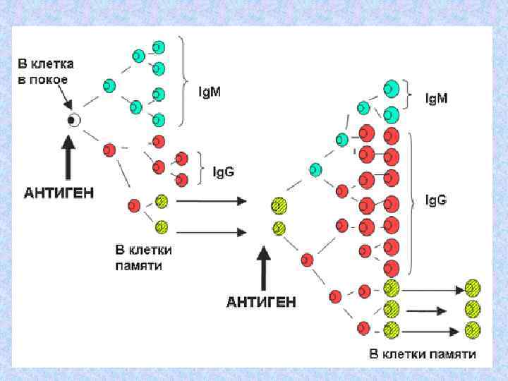 • Молодой В-лимфоцит, только что включившийся в иммунный ответ, вначале вырабатывает Ig. M антитела, а затем переключается на Ig. A, Ig. G или Ig. E • Присутствие Ig. M антител говорит об острой или обострившейся инфекции.