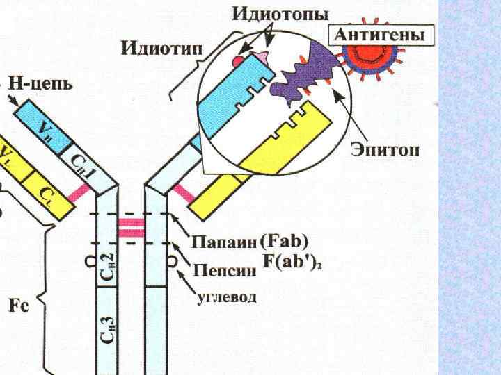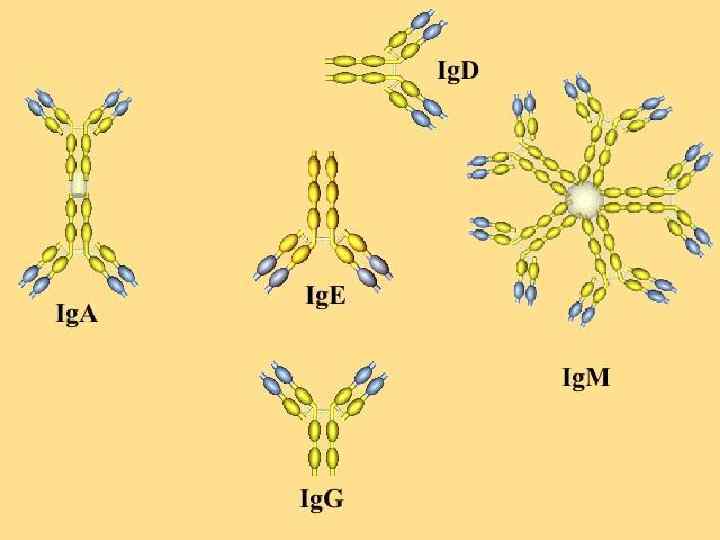 По строению тяжелых цепей все антитела делят на 5 классов: Ig. M, Ig. G, Ig. A, Ig. E, Ig. D.