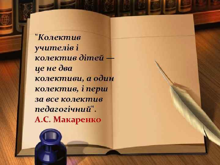 "Колектив учителів і колектив дітей — це не два колективи, а один колектив, і перш за все колектив педагогічний". А. С. Макаренко
