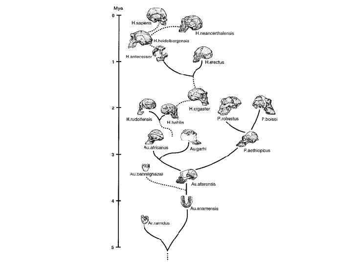 Массивные австралопитеки 2, 5 -2, 7 млн. лет назад возникли новые виды гоминид, обладавшие большим мозгом и относимые уже к роду Homo. Однако была ещё одна группа поздних австралопитеков, уклонившаяся от линии, ведущей к человеку – массивные австралопитеки (парантропы). Парантропы сделали ставку на размеры и растительноядность. Это привело их к экологической специализации и вымиранию. Слева - череп Paranthropus boisei, справа - для сравнения, череп Australopithecus africanus.