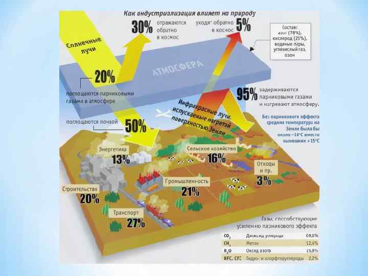 Парниковый эффект. «Парниковый эффект» возник не сегодня он существовал с тех пор, как наша планета обзавелась атмосферой. Причина быстрого роста количества «парниковых» газов тоже долго искать не надо вся наша цивилизация, от костров первобытных охотников до современных газовых плит и автомобилей основывается на быстром окислении соединений углерода, конечным продуктом которых и является СО 2.