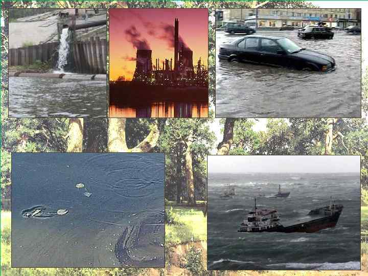 Загрязнение гидросферы Загрязнение вод – снижение биосферных функций и экологического значения вследствие попадания в них загрязняющих веществ. Оно проявляется в изменении физических и органолептических свойств, повышении минерализации, увеличении содержания ТМ, сокращении содержания растворенного кислорода, появлении болезнетворных бактерий и др. Основные виды загрязнений воды Химическое загрязнение – наиболее распространенное, стойкое и далеко распространяющееся. Оно может быть органическим (фенолы, пестициды и др. ) и неорганическим (соли, кислоты, щелочи), токсичным (мышьяк, соединение ртути, свинца и др. ) и нетоксичным. Бактериальное загрязнение – выражается в появлении в воде патогенных бактерий, вирусов (до 700 видов), простейших, грибов и др. Этот вид загрязнений носит временный характер. Весьма опасно содержание в воде радиоактивных веществ, вызывающих радиоактивное загрязнение. Радиоактивные элементы попадают в поверхностные водоемы при сбрасывании в них радиоактивных отходов, захоронение отходов на дне и др. Механическое загрязнение характеризуется попаданием в воду различных механических примесей. Тепловое загрязнение связано с повышением температуры вод в результате их смешивания с более нагретыми поверхностными или технологическими водами. При повышении температуры происходит изменение газового и химического состава в водах, что ведет к размножению анаэробных бактерий, выделению ядовитых газов – сероводорода, метана. По существующим санитарным нормам температура водоема не должна повышаться более чем на 3°С летом и 5°С зимой.