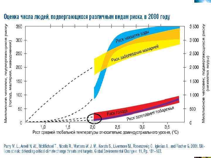 С 1990 года Рост температуры можно объяснить только с помощью факторов антропогенного воздействия Черные кривые – результаты наблюдений за температурой приземного слоя воздуха в России за последние 110 лет: тонкая (1) – данные за каждый год, толстая (2) – скользящее осреднение за 11 лет. Синяя кривая – расчеты по моделям с учетом только естественных факторов. Красная кривая – расчеты по тем же моделям с учетом естественных и антропогенных факторов. По вертикальной оси – отклонения от средней температуры за 1901 -1950 гг. Источник: «Оценочный доклад об изменениях климата и их последствиях на территории Российской Федерации» . Росгидромет. 2008 г. , том 1, стр. 166. http: //climate 2008. igce. ru
