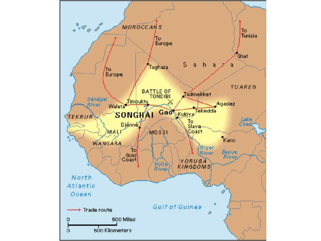 Sonni Ali Ber (1464– 91) used this very formula to free Songhay from the Kingdom of Mali to establish the Songhay Empire. Reputedly the greatest sorcerer of his day, Sonni Ali Ber was putatively capable of transforming himself into a vulture. From the sky, he surveyed his dominion and planned his attacks, which were murderously vicious. Like Dongo, he killed anyone who tried to resist him and then burned and pillaged the conquered villages, leaving in his wake a dust cloud of fear that did not dissipate. In this way, the power of Songhay expanded exponentially. Sonni Ali Ber’s successor, Askia Mohammed Touré, used Islam as well as his magical capacities to dominate his subjects.