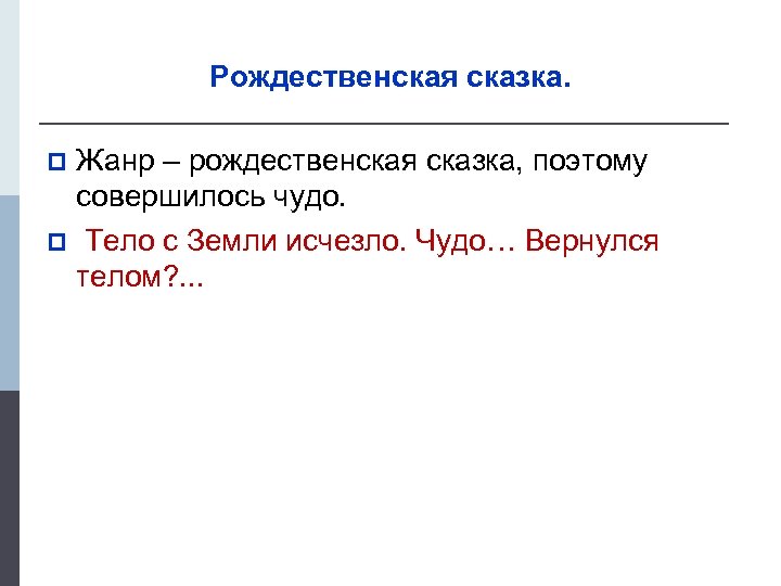 Рождественская сказка. Жанр – рождественская сказка, поэтому совершилось чудо. p Тело с Земли исчезло. Чудо… Вернулся телом? . . . p
