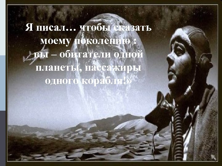 Я писал… чтобы сказать моему поколению : вы – обитатели одной планеты, пассажиры одного корабля!»