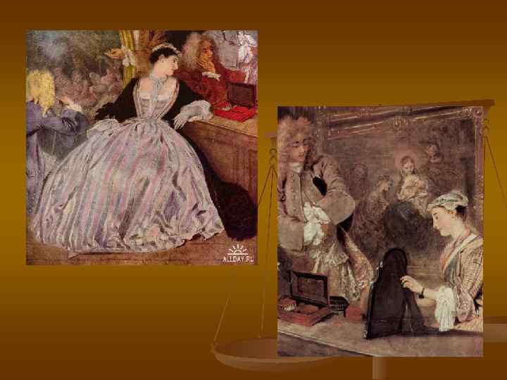 Антуан Ватто (1684 -1721) n n n В ранний период творчества создает гравюры и картины «мод и нравов» 1709 г. Работает в родном городе Валансьене. «Военные жанры» - картины, изображающие жизнь простых солдат В Париже сближается с кругом художниковрубенсистов (Шарлем де Лафоссом и др. ) Обращается к жанру «галантных празднеств» 1717 г. получает звание академи за картину «Паломничество на о. Киферу»
