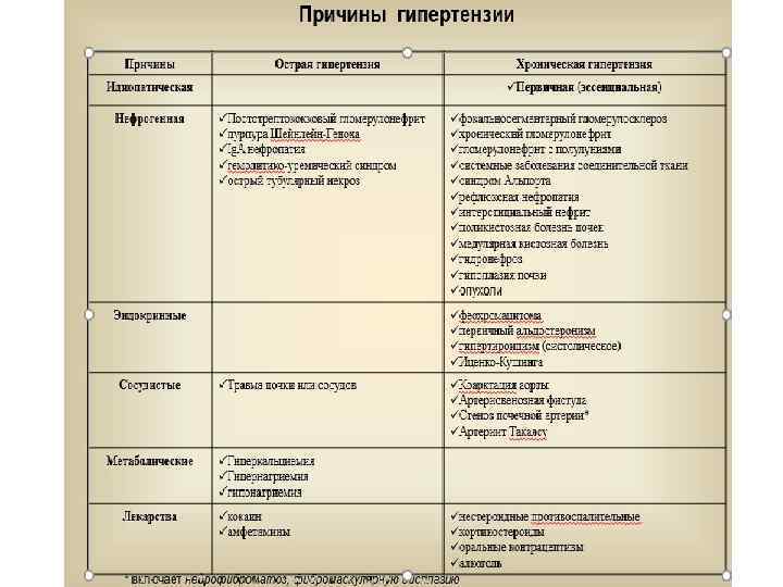 Причины вторичной гипотонии - травмы головного мозга - прогрессирования инфекционного заболевания, как признак его утяжеления - снижение функции щитовидной железы - скрытая или явная недостаточность надпочечников - все заболевания, для которых характерна скрытая (и тем более явная) кровопотеря (миома матки, неспецифический язвенный колит, язвенная болезнь желудка и двенадцатиперсной кишки, кровохарканье при туберкулезе или раке легких и т. д. ) ведущие также к снижению ОЦК - анемии (В 12 -дефицитная макроцитарная анемия, развивающаяся вследствие нарушения всасывания витамина В 12 - при гипоацидных гастритах, других болезнях ЖКТ - нередко сопровождается гипотонией без изменения ОЦК. ) - заболевания сердца (перенесенные инфаркты, как в остром периоде, так и в последующие годы из-за развития постинфарктного кардиосклероза, инфекционные миокардиты, кардиомиопатии, некоторые врожденные и приобретенные пороки) - Передозировка гипотензивных препаратов - гипотензия может возникать во время беременности (характеризуется низким тонусом артерий)