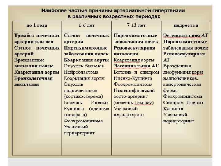 • • • Первичная: - Плановые профилактические осмотры детей - Обследование детей в семьях с отягощенной наследственностью - Профилактика ожирения - Занятия физической культурой • • • Вторичная: - Поддержание нормальной и снижение избыточной массы тела - Оптимизация физической активности - Рационализация питания - Профилактика кризов • • Дальнейшее ведение - Диспансерное наблюдение детей и подростков с высоко нормальным АД и АГ, с отягощенной наследственностью - Периодическое медицинское обследование с целью контроля за прогрессированием АГ 1 раз в 6 мес. детей с высоко нормальным АД. - В случае эссенциальной АГ – обследование раз в 3 -4 мес с обязательной консультацией нефролога, окулиста, невропатолога. Лабораторное обследование, - - ЭКГ 1 раз в год - Комплекс оздоровительных мероприятий, направленных на нормализацию АД. - С АГ 1 ст и подростки с ГБ 1 ст. - 3 группа здоровья - При появлении СН - 5 группа здоровь • • •