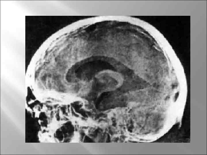 План 1. 2. 3. 4. 5. 6. 7. 8. 9. 10. 11. 12. Эхоэнцефалография Электромиография Электронейромиография Метод транскраниальной магнитной стимуляции Реоэнцефалография Эхоэнцефалоскопия Ультразвуковая доплерография Нейроренгенологические методы исследования (краниография, спондилография, рентгеноконтрастное исследование ликворных путей, вентрикулография, пневмоэнцефалография, миелография, церебральная ангиография, спинальная ангиография) Гаммаэнцефалография Компьютерная томография Магнитно-резонансная томография Диагностические операции