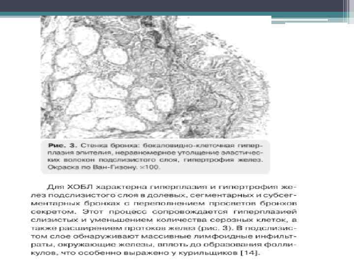 ИДИОПАТИЧЕСКИЙ ЛЕГОЧНЫЙ ФИБРОЗ Отличительным гистопатологическим признаком и главным диагностическим критерием является гетерогенное чередование при малом увеличении областей фиброза и сотовых изменений с участками менее пораженной или нормальной паренхимы. Эти гистопатологические изменения часто наблюдаются в субплевральных и парасептальных участках. Воспаление обычно слабое, характеризуется пятнистой интерстициальной инфильтрацией лимфоцитами и плазматическими клетками с гиперплазией пневмоцитов 2 типа и бронхиолярного эпителия. Зоны фиброза состоят преимущественно из плотного коллагена, хотя также постоянно находят рассеянные выпуклые субэпителиальные очаги пролиферирующих фибробластов и миофибробластов