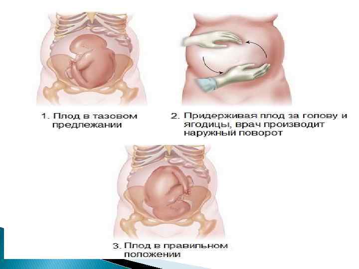 Доктор определит тазовое предлежание. . . Сроки проведения наружного поворота: Для первородящих – после 36 недель v Для повторнородящих – после 37 недель v