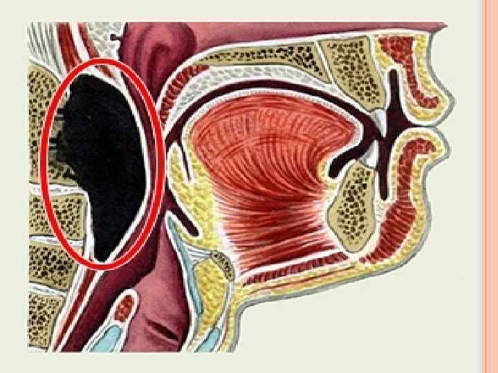 ПАТОГЕНЕЗ ЗАГЛОТОЧНОГО АБСЦЕССА У детей заглоточный абсцесс возникает в результате распространения инфекции в лимфатические узлы при остром ринофарингите, ангине, острых инфекционных заболеваниях (корь, дифтерия, скарлатина); заболевание может быть связано с травмой задней стенки глотки, аденотомией. Причиной инфицирования заглоточного пространства может быть гнойный процесс в слуховой трубе и барабанной полости. Глубокие заглоточные лимфатические узлы представляют собой первый барьер и играют роль регионарных лимфатических узлов для задних отделов полости носа, носоглотки, слуховой трубы и среднего уха. Инфекция распространяется по венозным или лимфатическим путям либо контактным путём.