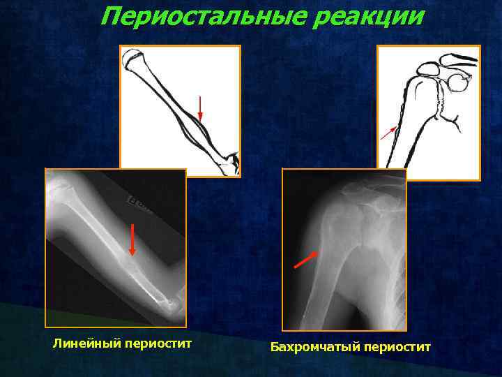 Периостальные реакции Линейный периостит Бахромчатый периостит