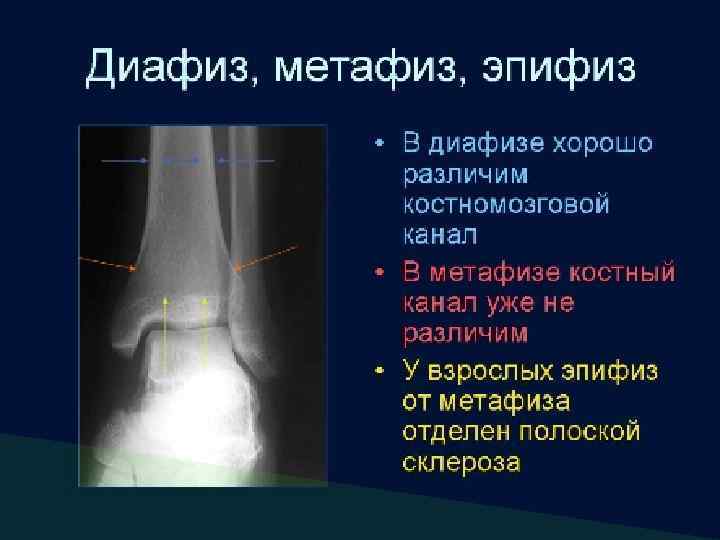 Анатомия трубчатой кости • Любая трубчатая кость имеет диафиз – среднюю часть, два метафиза – проксимальный и дистальный и два эпифиза