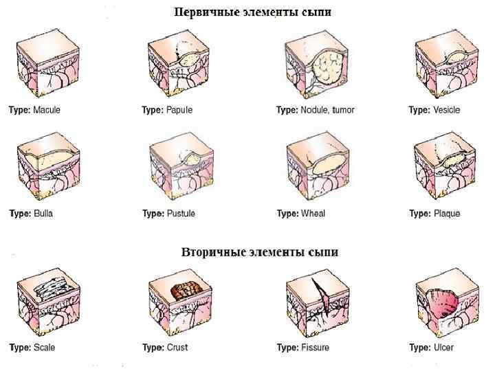 ВВЕДЕНИЕ. КРИТЕРИИ КЛАССИФИКАЦИИ ЭКЗАНТЕМ вид элементов сыпи: розеола, макула, эритема, папула, бугорок, узел, уртикария, везикула, пустула, булла, петехия, экхимоз; - размеры: мелкая - до 2, средняя — до 5, крупная — свыше 5 мм в диаметре; - форма: правильная, неправильная; - однородность элементов сыпи: мономорфная (все элементы относятся к одному виду и имеют одинаковые размеры); полиморфная (элементы сыпи резко различаются по форме, размерам, или имеются элементы различного вида); - локализация элементов: симметричная и асимметричная, преимущественно в той или иной области кожного покрова; - обилие сыпи: единичная (до 10 элементов), необильная (элементы можно сосчитать) и обильная (множественная); - метаморфоз сыпи: появление элемента, его развитие, часто с переходом элемента одного вида в другой, и угасание сыпи; - сроки появления: ранние — 1 -2 -й, средние — 3 -4 -й и поздние — после 5 го дня болезни. При характеристике сыпи указывают фон кожи (бледная, гиперемированная).