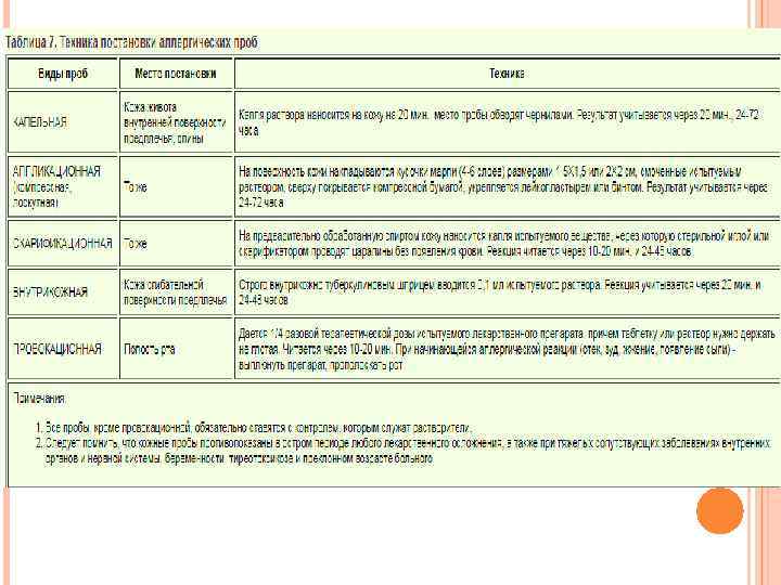 КОНТАКТНО-АЛЛЕРГИЧЕСКИЙ ДЕРМАТИТ Кожные аллергические пробы диагностическая процедура, цель которой выявление у пациентов аллергии на вещества, контактирующие с кожей. Методика заключается в нанесении на кожу небольшого количества разведенных аллергенов, которые оставляют на коже в течение 2 дней. Если у пациента имеется аллергия на какое-либо из этих веществ, то в течение 2 дней у него развивается реакция гиперчувствительности замедленного типа в виде участка дерматита в месте нанесения аллергена.