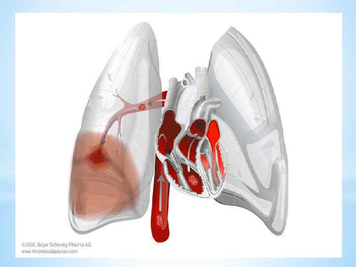 Профилактика эмболии легочной артерии при беременности • Профилактика эмболии легочной артерии заключается в предупреждении развития тромбов. При проведении родов и акушерских операций необходимо избегать резкого и длительного сгибания нижних конечностей, внутривенных вливаний в вены нижних конечностей. Следует шире рекомендовать раннее вставание родильниц. • Особое внимание должно быть уделено родильницам после операции кесарева сечения, у которых роды осложнились инфекцией и большой травмой родовых путей, при беременности, осложненной варикозным расширением вен нижних конечностей, тромбофлебитом и появлением очагов септической инфекции.