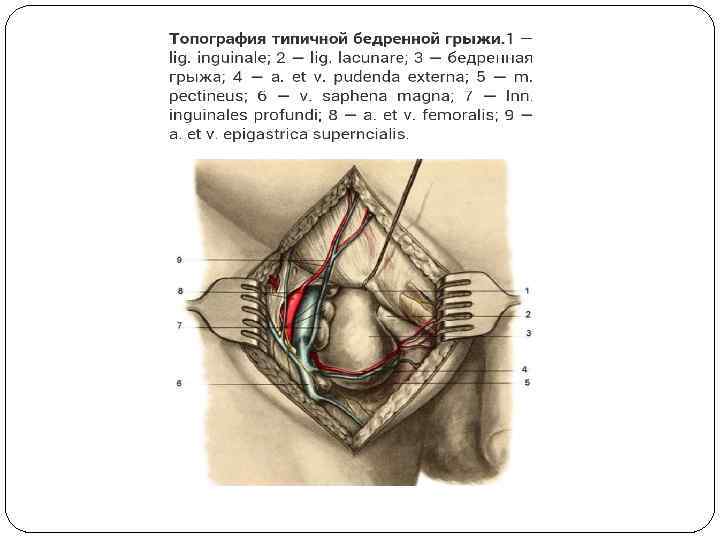 План I. Бедренные грыжи II. Хирургическое лечение бедренных грыж III. Послеоперационная вентральная грыжа IV. Хирургическое лечение послеоперационных вентральных грыж