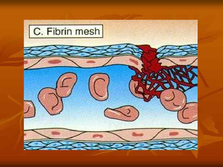 Фибринолитическая система n n n 1 фаза – образование активаторов профибринолиза 2 фаза – преобразование плазминогена в фибринолизин 3 фаза – расщепление фибрина фибринолизином к пептидам и аминокислотам