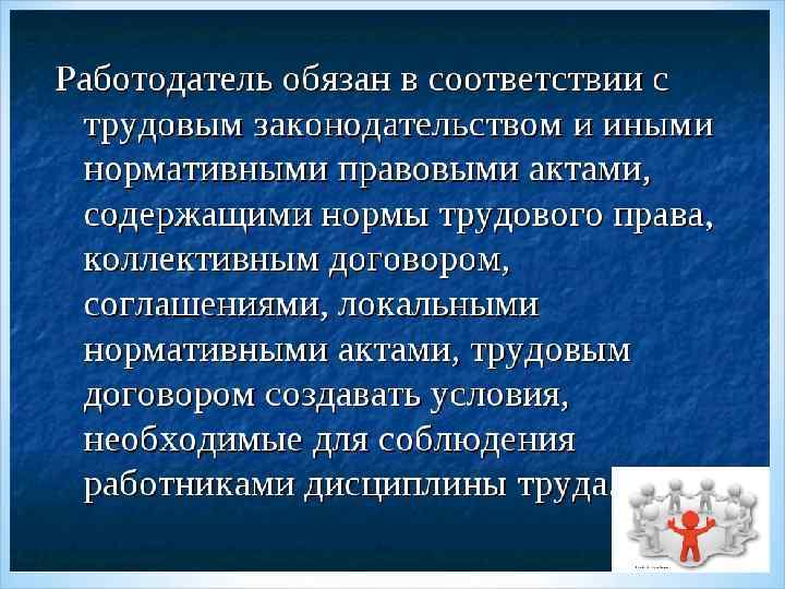 Однако доказанность совершения работником дисциплинарного проступка не всегда приводит к возникновению у работодателя права на применение к нему меры дисциплинарной ответственности. Для применения меры дисциплинарной ответственности должен быть доказан состав дисциплинарного проступка: 1. субъект дисциплинарной ответственности физическое лицо, вступившее в трудовые отношения и достигшее определенного возраста. 2. субъективная сторона, то есть психическое отношение работника к неправомерному действию (бездействию). Вина в любой ее форме может быть доказана только по отношению к работнику, который способен отдавать отчет в своих действиях и руководить ими. В связи с чем работник, который признан судом недееспособным, не может совершить виновных действий, а следовательно, и стать субъектом дисциплинарной ответственности. 3. объект, то есть конкретные трудовые обязанности или конкретное положение правил внутреннего трудового распорядка, которые не исполнены работником или исполнены им ненадлежащим образом. Отсутствие конкретного нарушения правил трудовой деятельности также не позволяет на законных основаниях привлечь работника к дисциплинарной ответственности. 4. объективная сторона, которая заключается в наступлении неблагоприятных для работодателя последствий, находящихся в причинной связи с совершенными работником виновными и неправомерными действиями (бездействием).