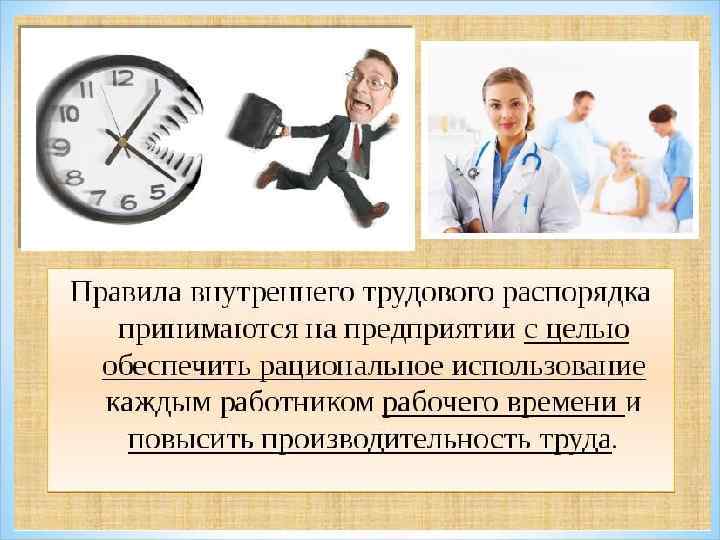 Правила внутреннего трудового распорядка организации утверждаются работодателем с учетом мнения пред ставительного органа работников организации (ст. 190 ТК РФ) и распространяются на всех работников организации. С правилами внутреннего трудового распорядка рабо тодатель обязан ознакомить работника приеме его на работу. Достаточно часто они являются приложением к коллективному договору и обсуждаются при заключении этого договора. Интересы работников при обсуждении представляет первич ная профсоюзная организация. Правила внутреннего трудового распорядка имеют целью урегулировать внутренний трудовой распорядок данного произ водства, укрепить трудовую дисциплину, способствовать рацио нальному использованию каждым работником рабочего времени, повышению производительности труда. Для возложения на работника обязанности по соблюдению правил внутреннего трудового распорядка организации работодатель должен доказать ознакомление работника с данными правилами. Данное ознакомление должно происходить в письменной