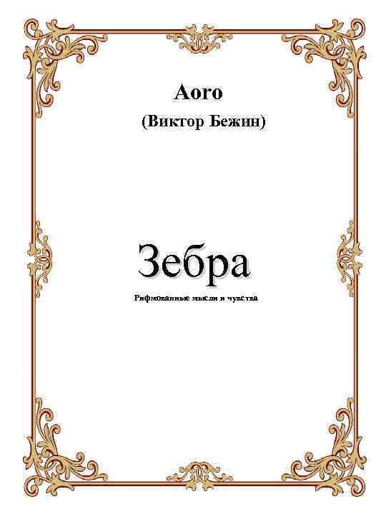 Aoro (Виктор Бежин) Зебра Рифмованные мысли и чувства