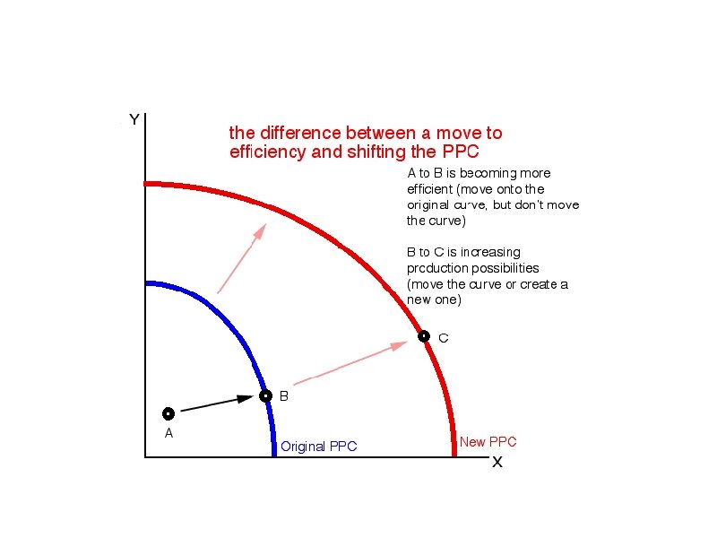 Shape of PPC/PPF cars shirts computers linear – constant oppty costs; goods that use similar inputs curved – increasing oppty costs; goods that require specialized inputs – some resources better suited to making 1 good vs. another