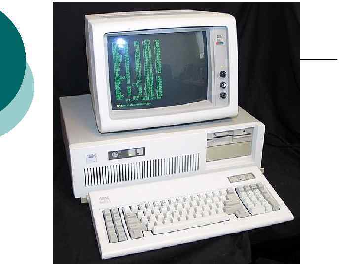 Появление IBM PC В 1979 г. фирма IBM решила попробовать свои силы на рынке персональных компьютеров. Для удешевления разработки было разрешено не конструировать персональный компьютер «с нуля» , а использовать блоки, изготовленные другими фирмами. ¡ В качестве основного микропроцессора компьютера был выбран новейший тогда 16 разрядный микропроцессор Intel 8088. Его использование позволило значительно увеличить потенциальные возможности компьютера, так как новый микропроцессор позволял работать с 1 Мбайтом памяти, а все имевшиеся тогда компьютеры были ограничены 64 Кбайтами. ¡ В компьютере были использованы и другие комплектующие различных фирм. ¡ Его программное обеспечение было поручено разработать небольшой фирме Microsoft. В августе 1981 г. новый компьютер под названием IBM PC был официально представлен публике. Через один два года компьютер IBM PC занял ведущее место на рынке.