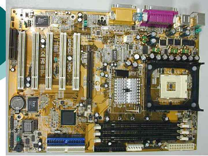 Системный блок По внешнему виду системные блоки различаются формой корпуса. ¡ Desctop (горизонтальное исполнение) l ¡ Slim (особо плоские) Tower (вертикальное исполнение): l Big tower (полноразмерный) l Midi tower (среднеразмерный) l Mini tower (малоразмерный) Форм фактор – параметр, от которого зависят требования к размещаемым устройствам. Прежним стандартом корпуса был форм фактор АТ, в настоящее время в основном используются корпуса форм фактора АТХ. Форм фактор корпуса должен быть обязательно согласован с форм фактором главной (системной ) платы компьютера – материнской платы.