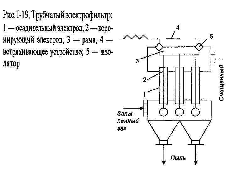 В электрофильтрах очистка газов от пыли происходит под действием электрических сил. В процессе ионозации молекул газов электрическим разрядом происходит заряд содержащихся в них частиц (коронирующий электрод). Ионы абсорбируются на поверхности пылинок, а затем под действием электрического поля они перемещаются и осаждаются к осадительным электродам. Зарядка частиц в поле коронного разряда происходит по двум механизмам: воздействием электрического поля (частицы бомбардируются ионами, движущимися в направлении силовых линий поля) и диффузией ионов. Первый механизм преобладает при размерах частиц более 0, 5 мкм, второй – менее 0, 2 мкм. Для частиц диаметром 0, 2 – 0, 5 мкм эффективны оба механизма.