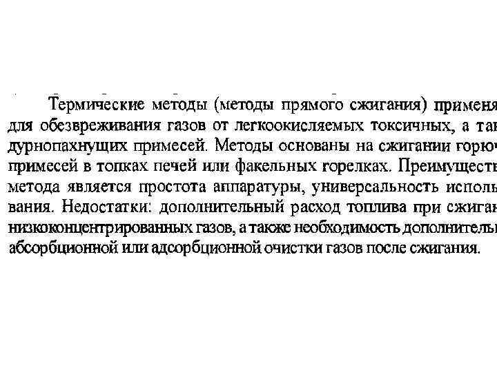 Известно четыре основных метода очистки воздуха от газообразных примесей: - метод абсорбции; - метод хемосорбции; - метод адсорбции; - метод термической нейтрализации.