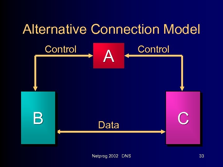Alternative Connection Model Control B A Data Netprog 2002 DNS Control C 33