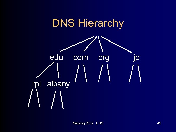 DNS Hierarchy edu com org jp rpi albany Netprog 2002 DNS 45