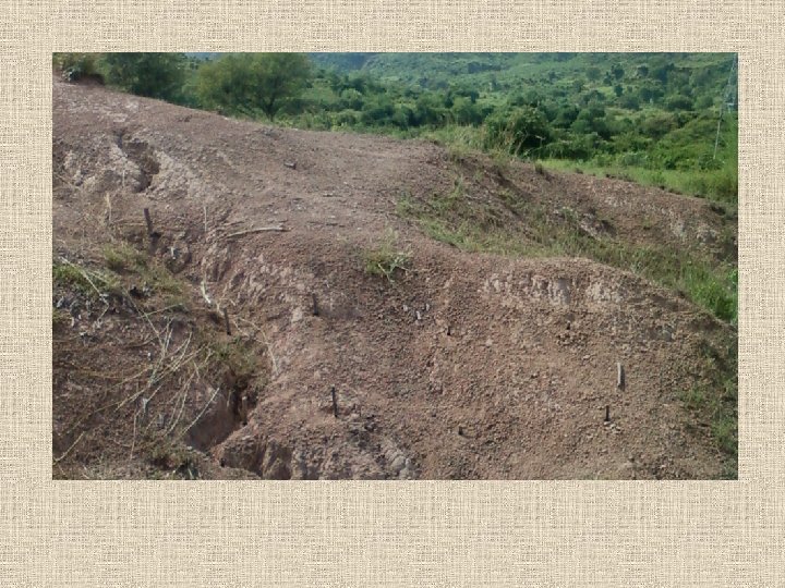 . Climate • • • Average annual rainfall: Mean minimum temperature: Mean maximum temperature: Soil of study area Average texture of top soil • Sand 57. 1% • Silt 28. 7% • Clay 14. 2% Other soil characteristics • Organic matter 0. 08% • Bulk density 1. 5 gm/cc • Wilting point 0. 1 cm 3 / cm 3 • Saturated hydraulic conductivity 1. 6 cm/hr 656 mm 6. 40 C 38. 50 C