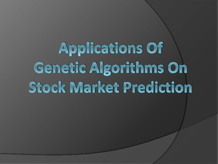 Applications Of Genetic Algorithms On Stock Market Prediction