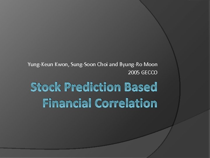 Yung-Keun Kwon, Sung-Soon Choi and Byung-Ro Moon 2005 GECCO Stock Prediction Based Financial Correlation