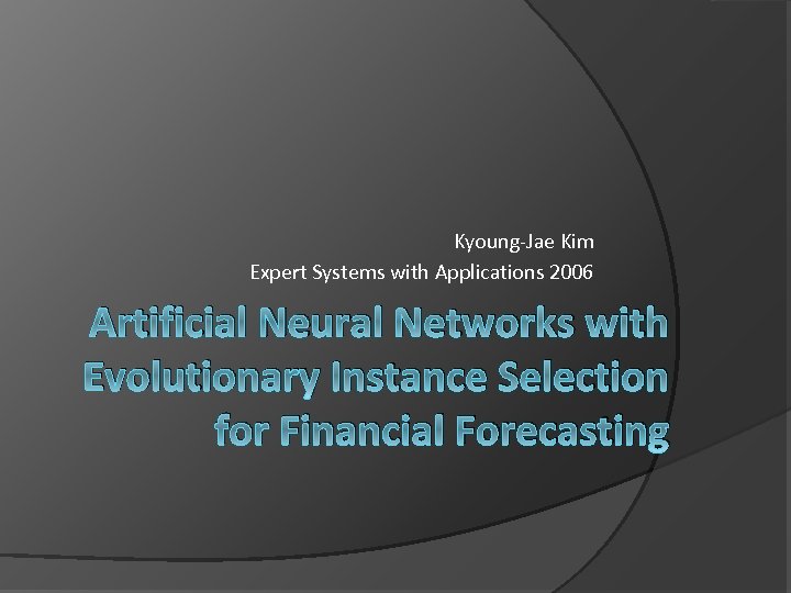 Kyoung-Jae Kim Expert Systems with Applications 2006 Artificial Neural Networks with Evolutionary Instance Selection for Financial Forecasting
