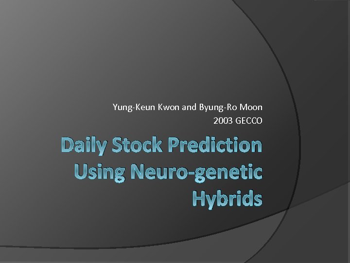 Yung-Keun Kwon and Byung-Ro Moon 2003 GECCO Daily Stock Prediction Using Neuro-genetic Hybrids