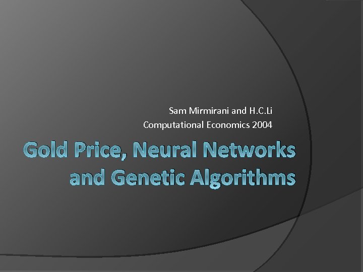 Sam Mirmirani and H. C. Li Computational Economics 2004 Gold Price, Neural Networks and Genetic Algorithms