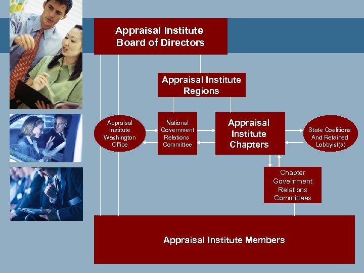 Appraisal Institute Board of Directors Appraisal Institute Regions Appraisal Institute Washington Office National Government Relations Committee Appraisal Institute Chapters State Coalitions And Retained Lobbyist(s) Chapter Government Relations Committees Appraisal Institute Members