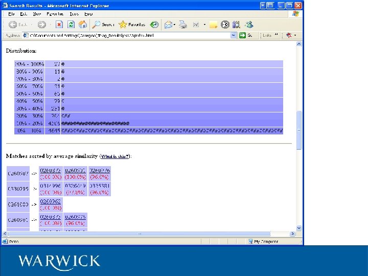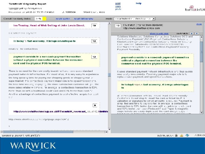 Digression: Essays Plagiarism in essays is easier to detect Lots of “tricks” a lecturer can use! – Google search on phrases – Abnormal style –. . . etc. Software tools – Let's have a look. . .