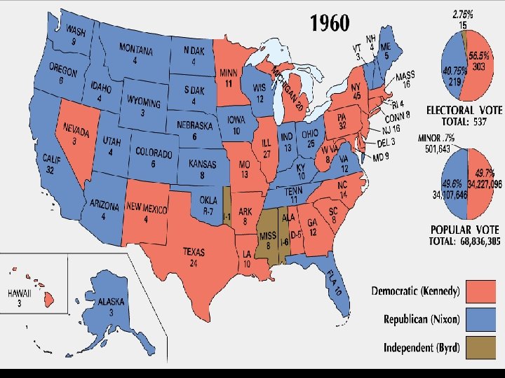 Election of 1960 n Nixon n n 47 Ike’s VP “kitchen debate” Kennedy n n n 43 Catholic “Missile Gap”